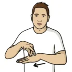 Explication : Ce signe rappelle le signe « malade ». Il évoque l’image de prendre et d’accompagner celui qui a besoin d’aide, le malade.
