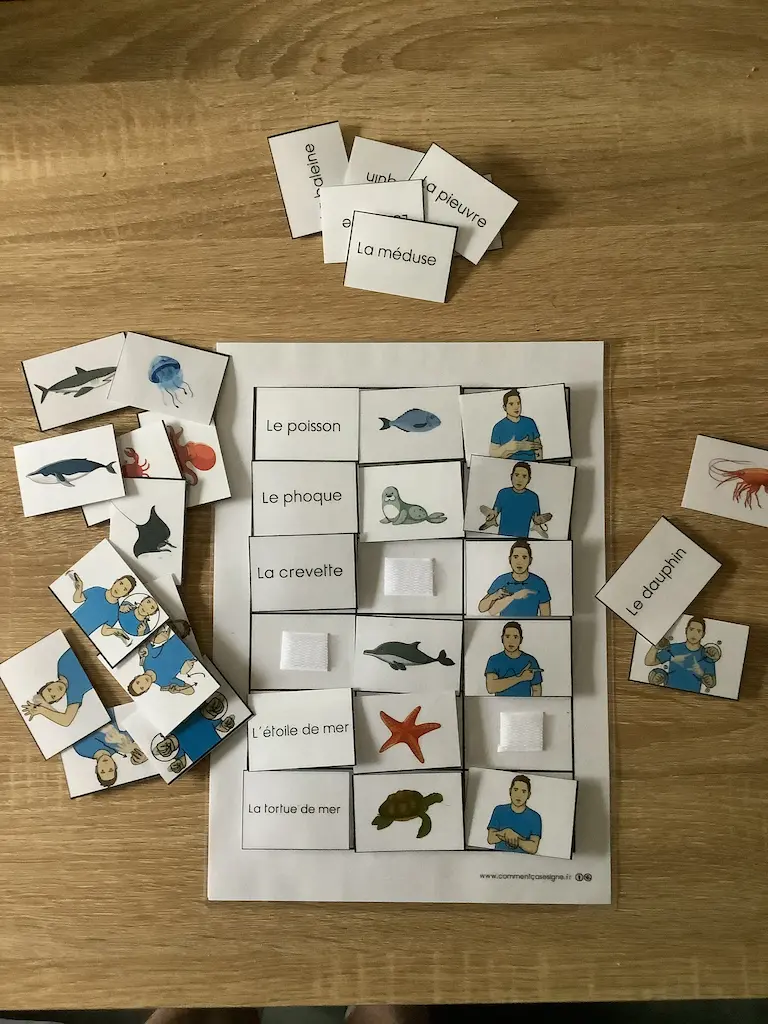 Vous trouverez ici un ensemble de ressources en Langue des Signes Française sur les différents animaux. Cette page rassemble des signaires thématiques, des jeux de cartes, des mémoris, des dominos, ainsi que des vidéos pour apprendre et pratiquer les signes liés aux animaux. Bonne exploration !