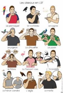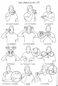 Description : Signaire à imprimer sur le thème des oiseaux en LSF (Langue des Signes Française). Il permet de découvrir et de travailler le vocabulaire animalier. Le signaire est disponible en version couleur et en noir et blanc. Ce support est complété par des flashcards sur les oiseaux.