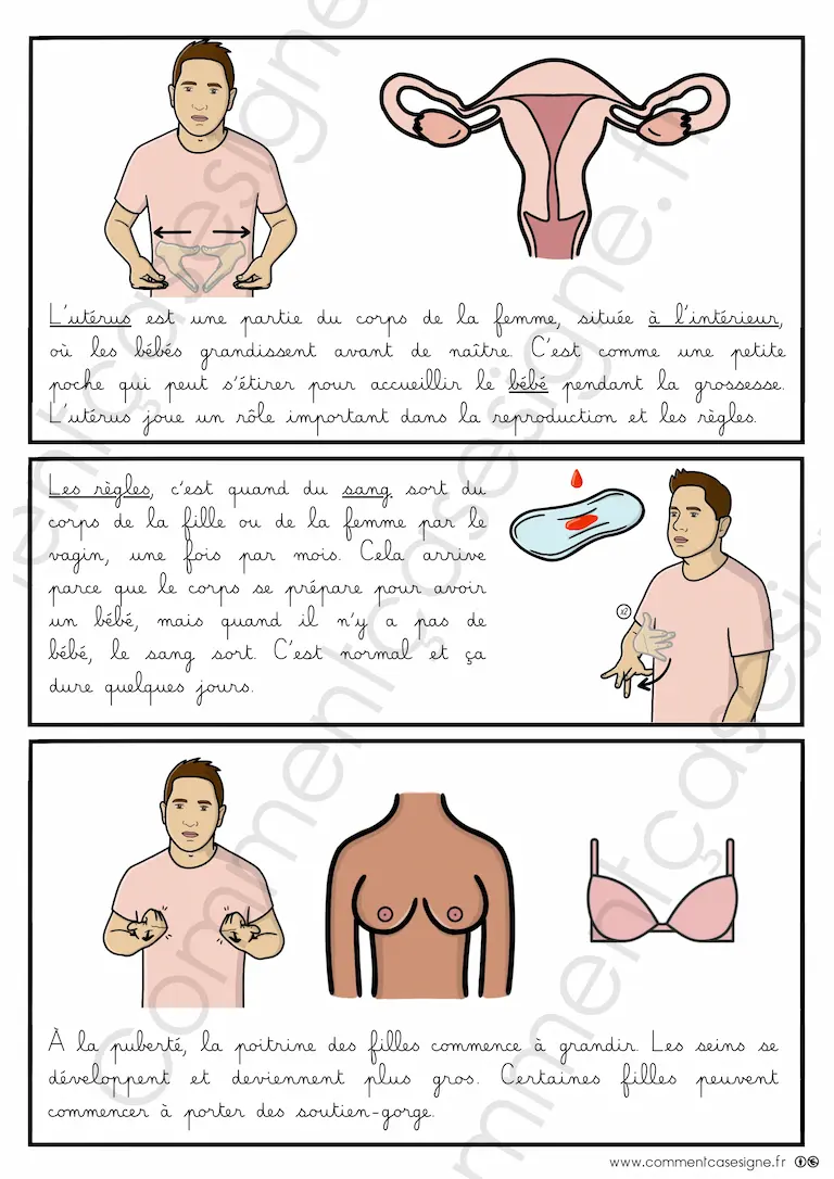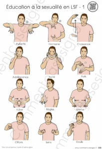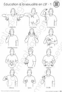 Description : Ensemble de signaires et de 7 fiches explicatives sur le thème de la puberté en LSF (Langue des Signes Française). Ce support a pour objectif d’accompagner la compréhension des changements corporels, hormonaux et émotionnels liés à l’adolescence, de manière claire, respectueuse et accessible.