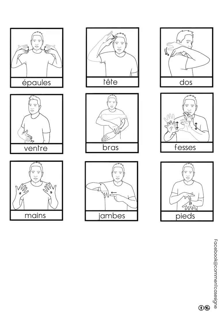 Vous trouverez ici un ensemble de ressources en Langue des Signes Française sur le corps. Cette page rassemble des signaires thématiques, des jeux de cartes, des mémoris, des dominos, ainsi que des vidéos pour apprendre et pratiquer les signes liés aux corps. Bonne exploration !