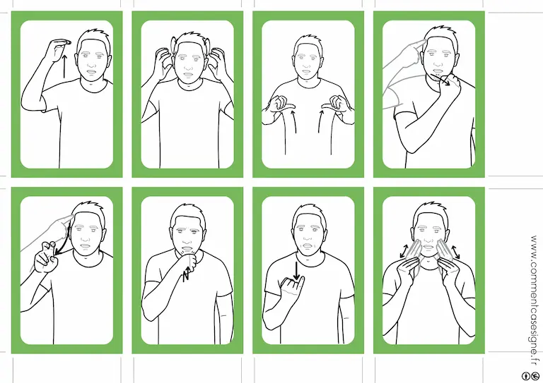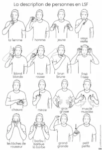 Description : Signaire à imprimer sur le thème de la description physique en LSF (Langue des Signes Française). Il permet d’aborder le vocabulaire lié à l’apparence et aux caractéristiques physiques des personnes de manière claire et accessible.