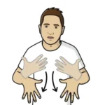 Explication : Ce signe a une négation irrégulière, en effet « pas fini » se réalise avec le configuration en « J » avec un mouvement répété.