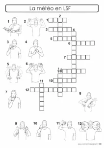 Description : Signaire et flashcards à imprimer sur le thème de la météo en LSF (Langue des Signes Française). Il permet d’aborder le vocabulaire lié au temps et aux phénomènes météorologiques de manière simple et visuelle.