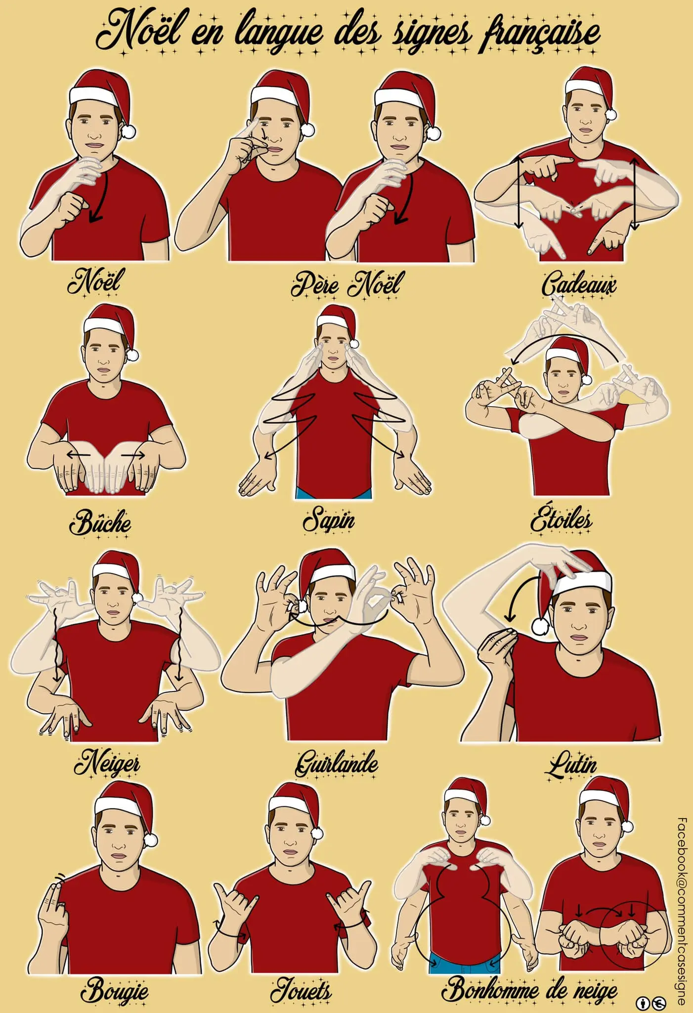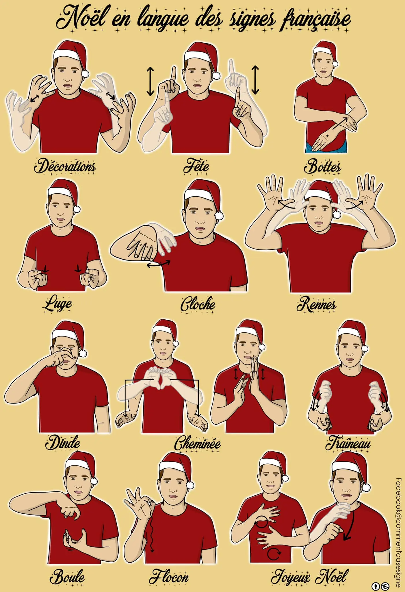 Description : Signaires à imprimer sur le thème de Noël en LSF (Langue des Signes Française). Il réunit 22 illustrations entièrement en version couleur.