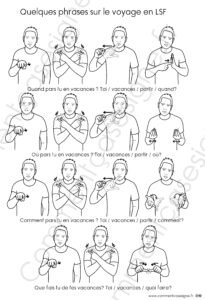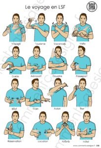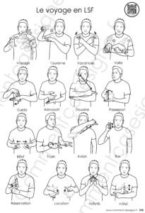 Description : Signaire à imprimer sur le thème du voyage en LSF (Langue des Signes Française). Il permet d’aborder le vocabulaire lié aux déplacements, au tourisme et à l’organisation des vacances de manière visuelle et accessible.