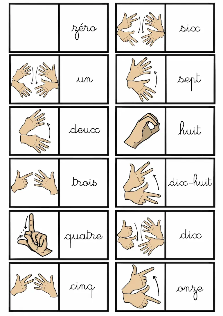 Vous trouverez ici un ensemble de ressources en Langue des Signes Française sur les mathématiques. Cette page rassemble des signaires thématiques, des jeux de cartes, des mémoris, des dominos, ainsi que des vidéos pour apprendre et pratiquer les signes liés aux maths. Bonne exploration !