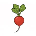 Définition : Un radis est un petit légume qui pousse dans la terre. Il est souvent rouge avec l’intérieur blanc. Il a un goût un peu piquant.